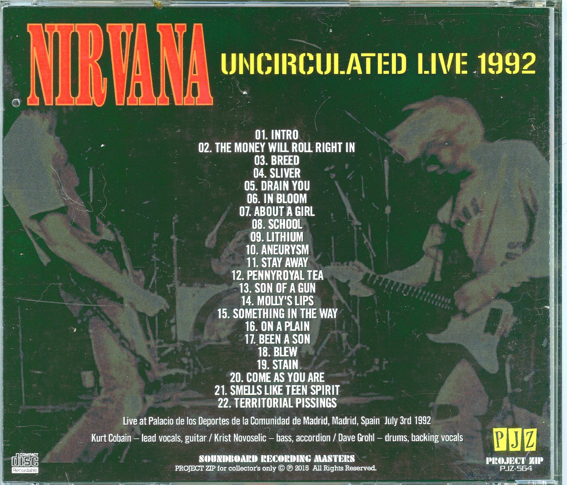 NIRVANA Uncirculated Live 1992 Palacio de los Deportes Madrid Spain July 3rd 1992 NIRVANA Uncirculated Live 1992 ( Palacio de los Deportes, Madrid, Spain, July 3rd, 1992 )