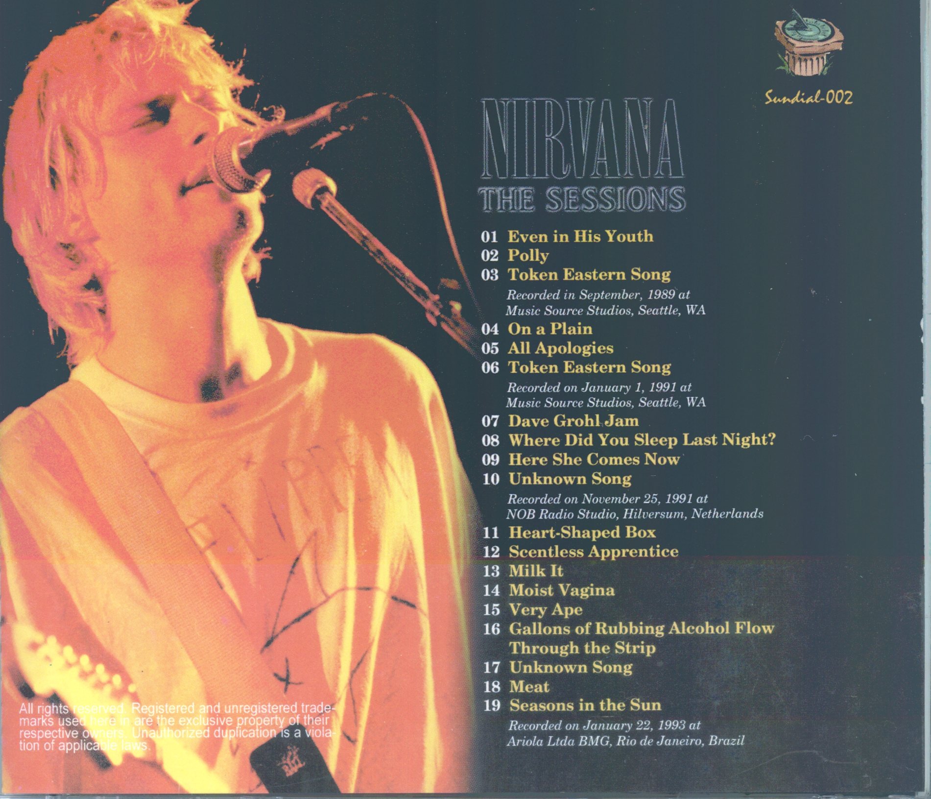 Nirvana The Sessions 1 CD Recorded on January 22 1993 at Ariola Ltda BMG Rio de Janeiro Brazil Nirvana The Sessions ( 1 CD )( Recorded on January 22, 1993 at Ariola Ltda BMG, Rio de Janeiro, Brazil )