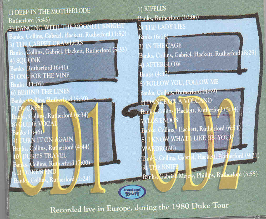P. Gabriel / GENESIS / P. Collins – Musica ( 2 cd set ) ( Stonehenge )( Live In Europe During the 1980 Duke Tour )