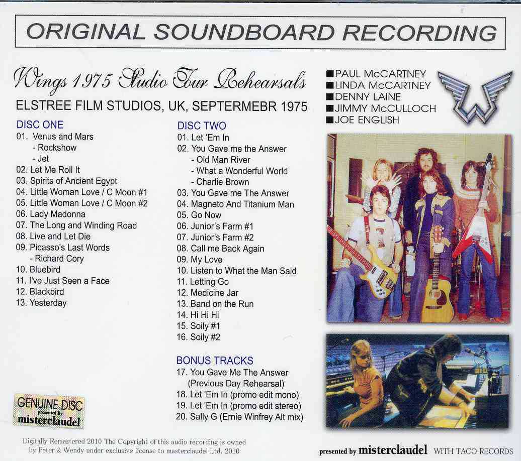 Paul McCartney 1975 Wings Studio Tour Rehearsals Masters One 2 CD SET Misterclaudel Paul McCartney 1975 Wings Studio Tour Rehearsals ( Masters One ) ( 2 CD SET )( Misterclaudel )