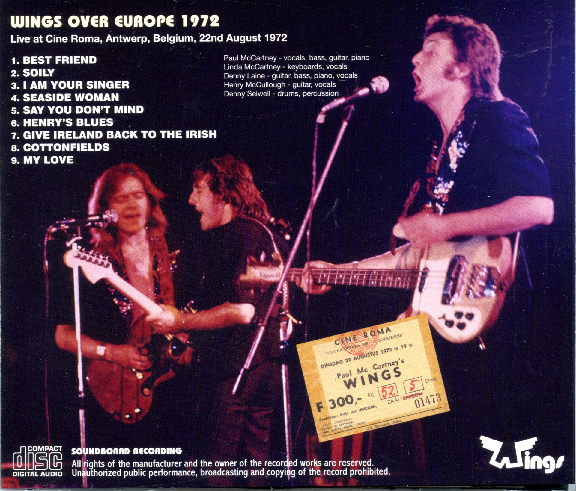 Paul McCartney Antwerp 1972 Soundboard 1 CD Cine Roma Antwerp Belgium August 22nd 1972 Paul McCartney Antwerp 1972 Soundboard ( 1 CD ) ( Cine Roma, Antwerp, Belgium, August 22nd, 1972 )