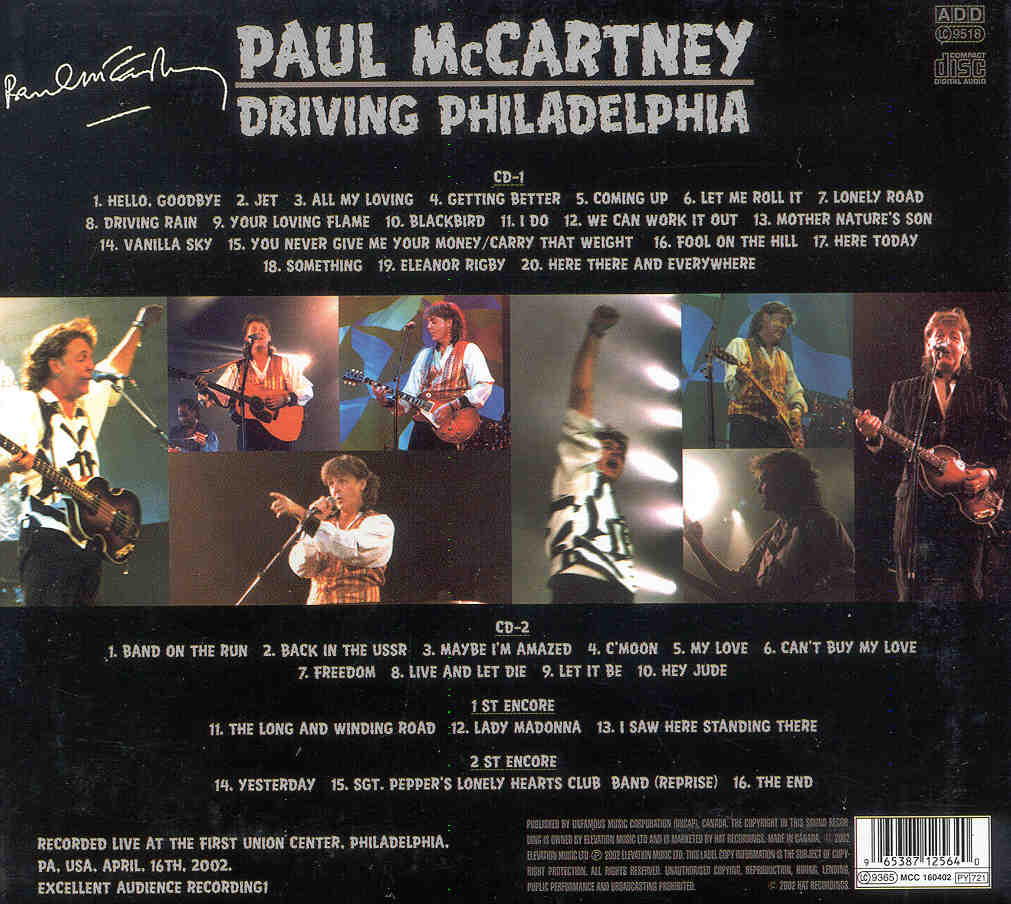 Paul McCartney – Driving Tour 2002 Driving Philadelphia ( Philadelphia , April 16th , 2002 ) ( 2 cd set )