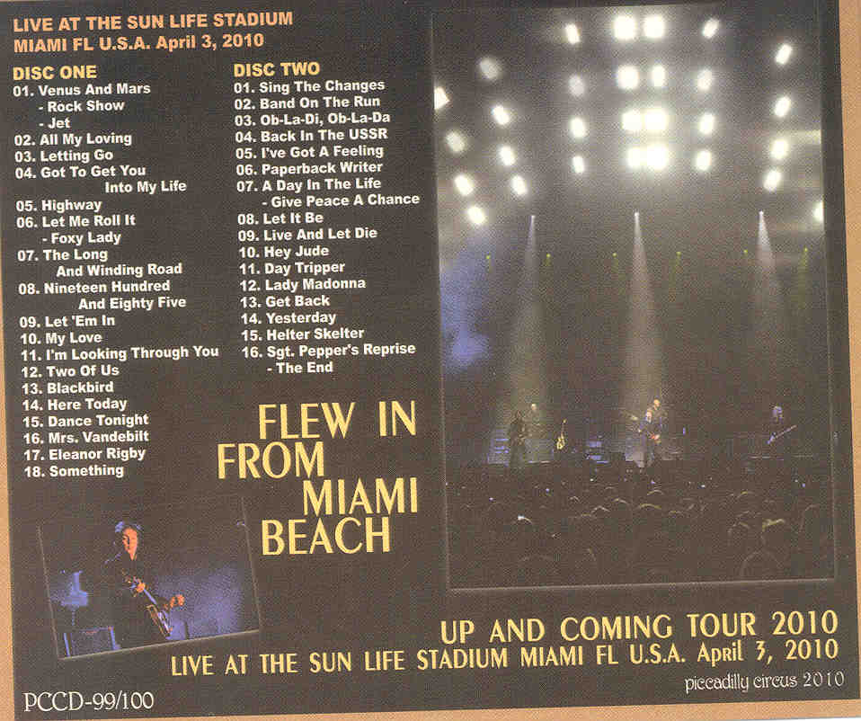 Paul McCartney – Flew In From Miami Beach (2 CD SET )( Piccadilly Circus ) ( Miami , FL , USA April 3rd , 2010)