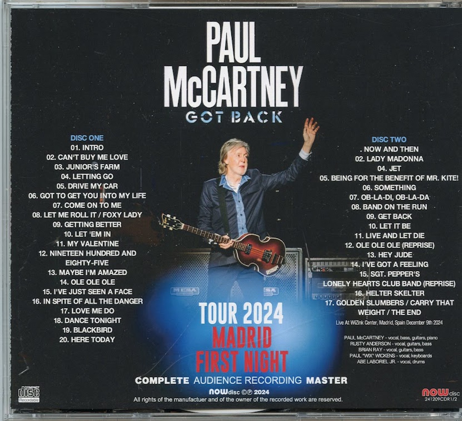 PAUL McCARTNEY – GOT BACK TOUR 2024 Madrid First Night ( 2 CD SET ) ( NOW DISC ) ( Wizink Center, Madrid, Spain, December 9th, 2024 )