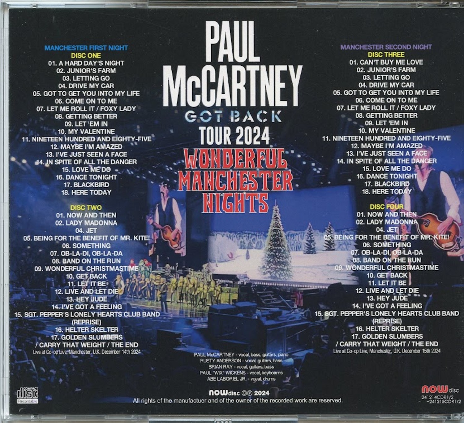 PAUL McCARTNEY – GOT BACK TOUR 2024 Wonderful Manchester Nights ( 4 CD SET ) ( NOW DISC ) ( Two Complete Shows Manchester First And Second Night, Dece,ber 14th and 15th, 2024 )