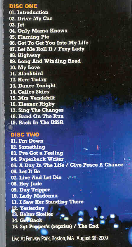 Paul McCartney – Highway To Boston 2009 ( 2 CD SET ) ( Fenway Park , Boston , August 6th , 2009 )