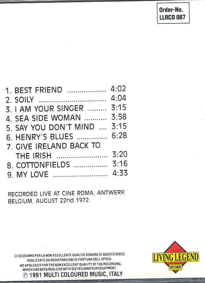 Paul McCartney & Wings recorded live in Cine Roma, Antwerp, Belgium, 22 August 1972.