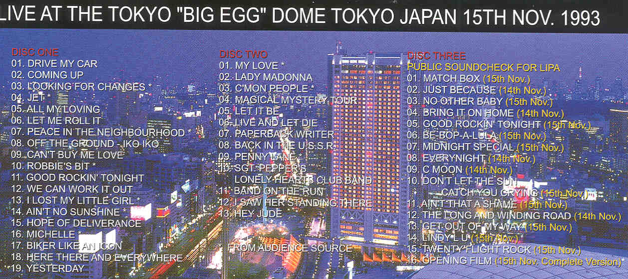Paul McCartney Live And Let Live 3 CD SET Complete Third Day of Tokyo Dome 1993 Paul McCartney Live And Let Live ( 3 CD SET ) ( Complete Third Day of Tokyo Dome 1993 )