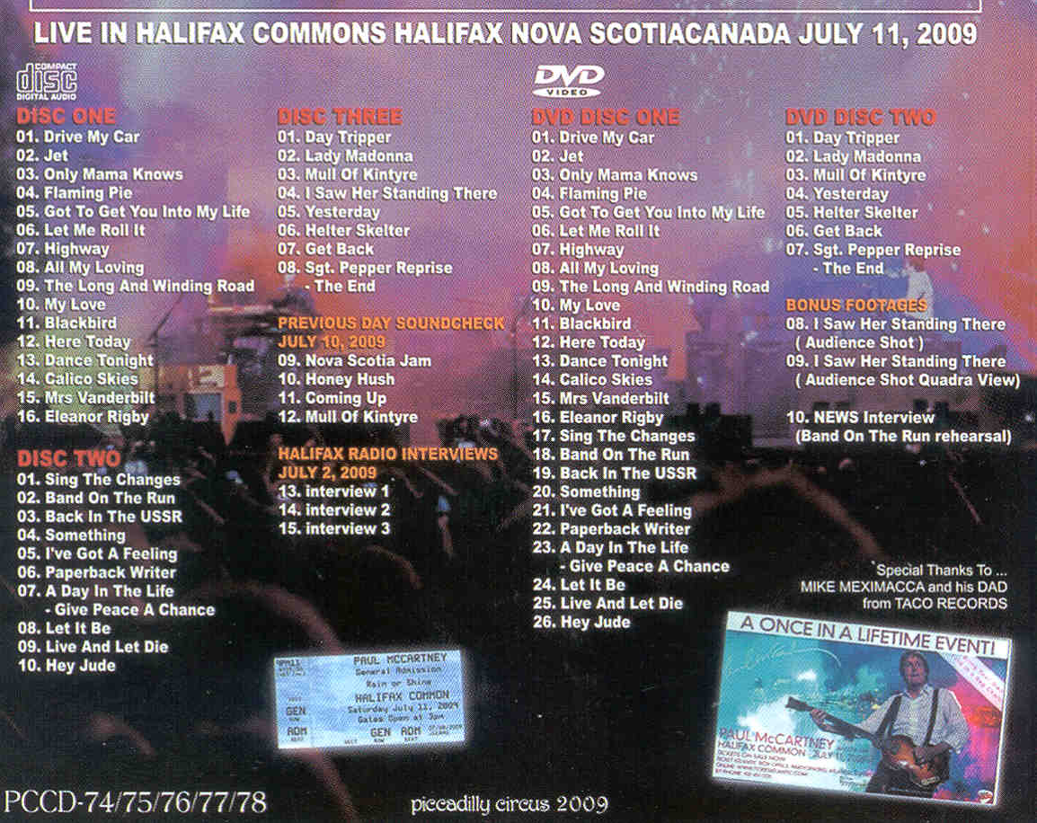 Paul McCartney – Live On The Commons Halifax 2009 ( 3 CD + 2 DVD set ) ( Piccadilly Circus )