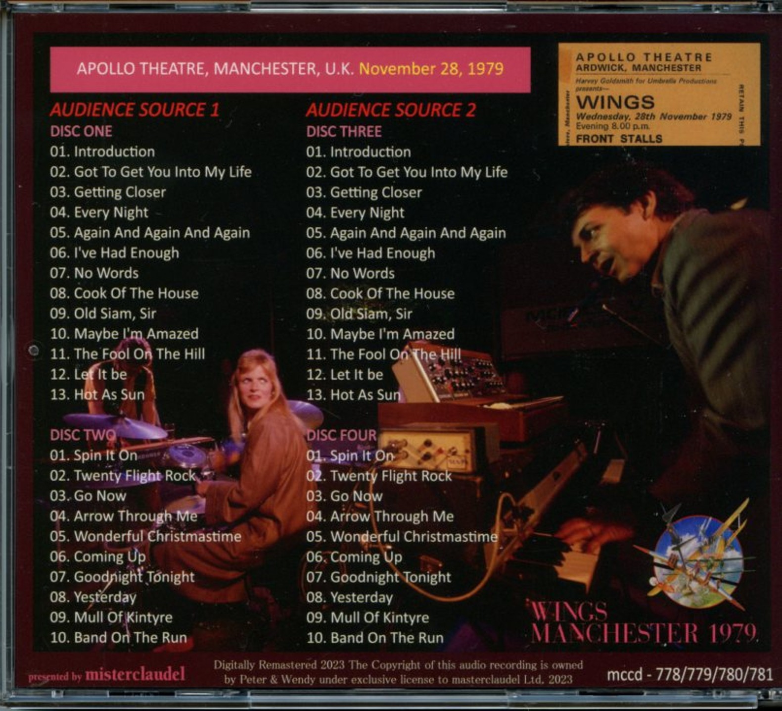 Paul McCartney Manchester 79 4 CD SET Misterclaudel Apollo Theatre Manchester UK November 28th 1979 Paul McCartney Manchester 79 ( 4 CD SET ) ( Misterclaudel ) ( Apollo Theatre, Manchester, UK, November 28th, 1979 )