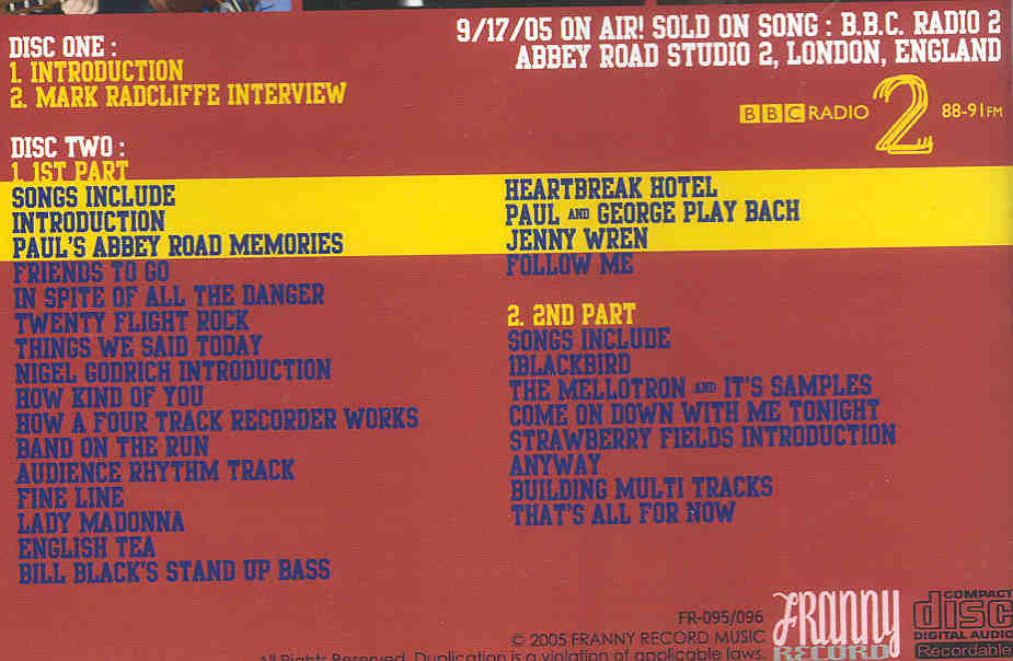 Paul McCartney Sold On Song 2 CD SET Sep 17th 2005 Abbey Road Studio 2 London UK Paul McCartney Sold On Song ( 2 CD SET ) ( Sep 17th , 2005 , Abbey Road Studio 2 , London , UK )
