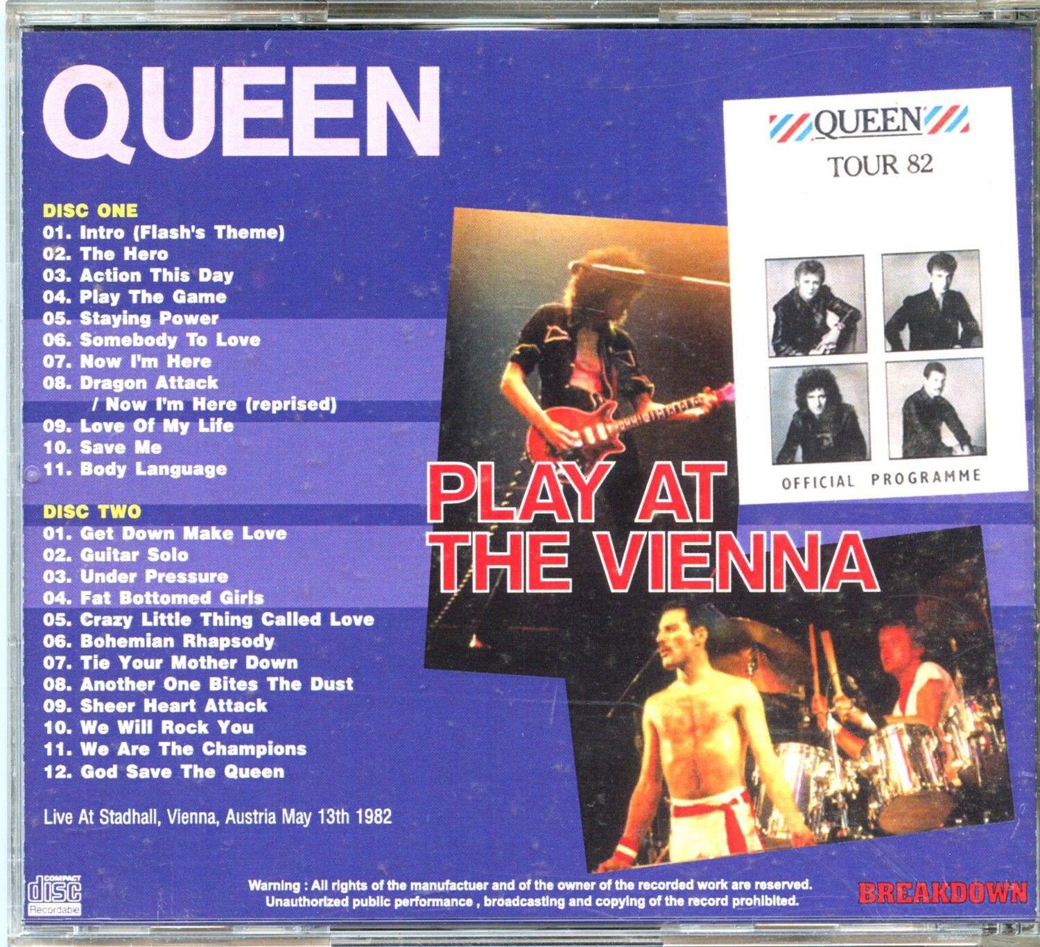 QUEEN – Play At The Vienna ( 2 CD SET ) ( Breakdown ) ( Live at Stadhall, Vienna, Austria, May 13th, 1982 )