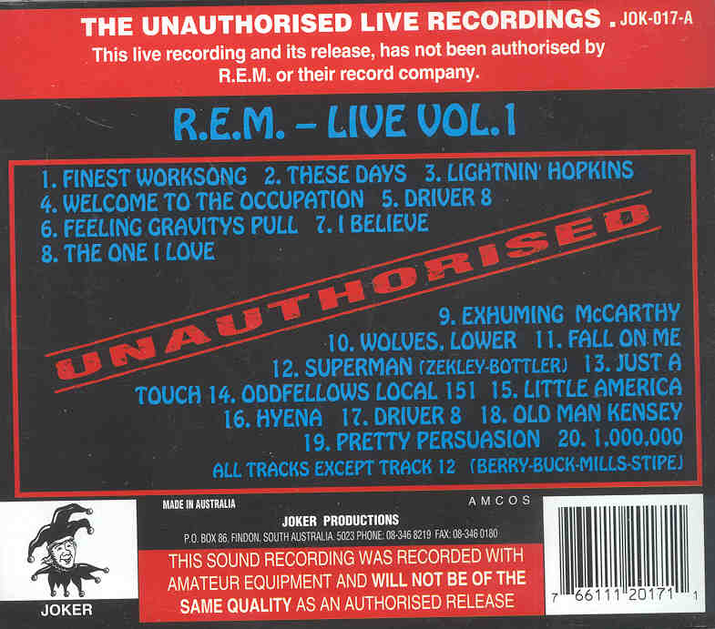 R.E.M. Unauthorized Live Vol. 1 Joker R.E.M. Unauthorized Live Vol. 1 ( Joker )