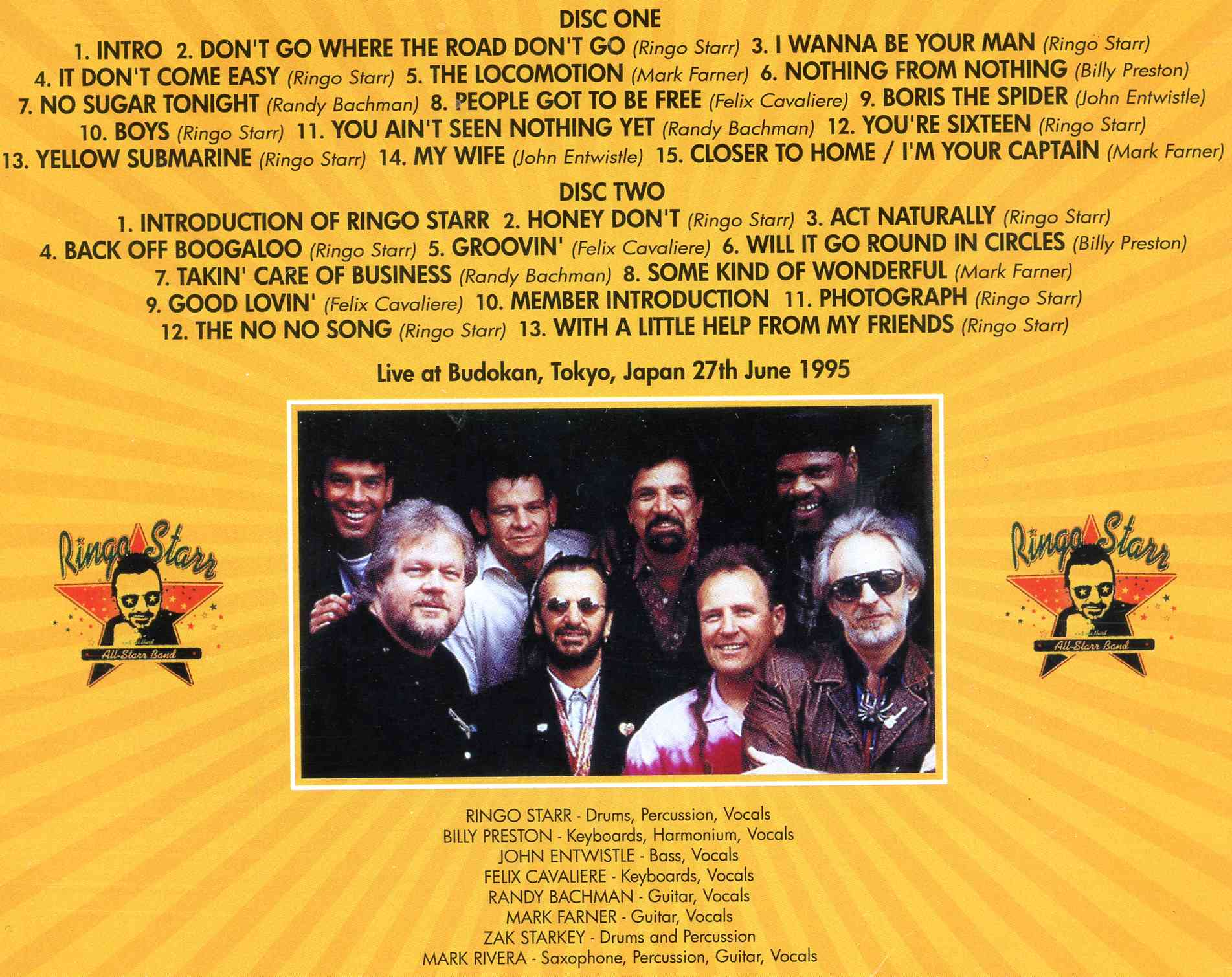 Ringo Starr Budokan 1995 2nd Night 2 CD SET Live in Budokan Tokyo Japan June 27th 1995 Ringo Starr Budokan 1995 2nd Night ( 2 CD SET ) ( Live in Budokan , Tokyo , Japan , June 27th , 1995 )