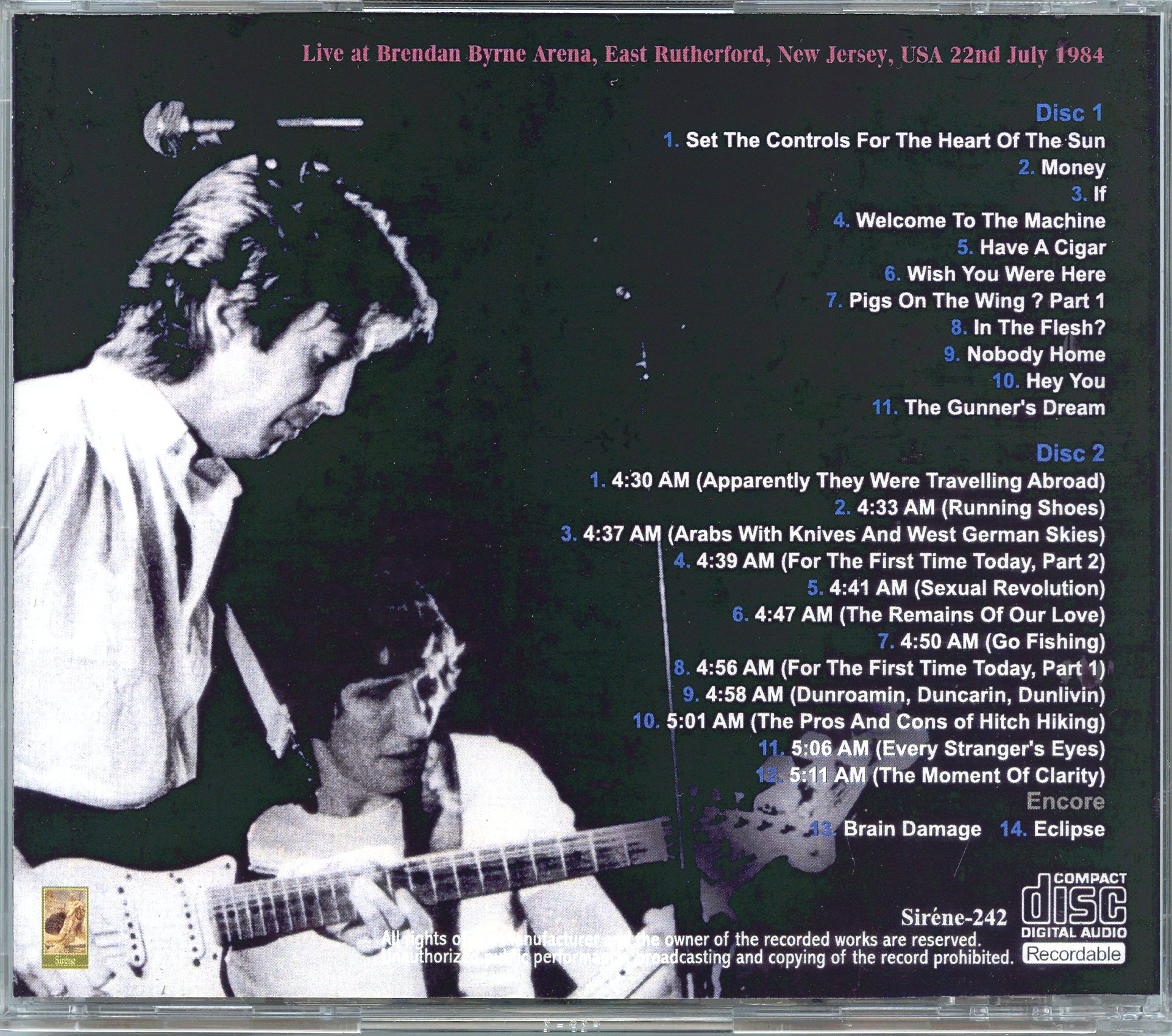 Roger Water – Darkness Of A Prophecy ( 2 CD SET ) ( SIRENE )( With Eric Clapton Brendan Byrne Arena, New Jersey, July 22nd, 1984 )