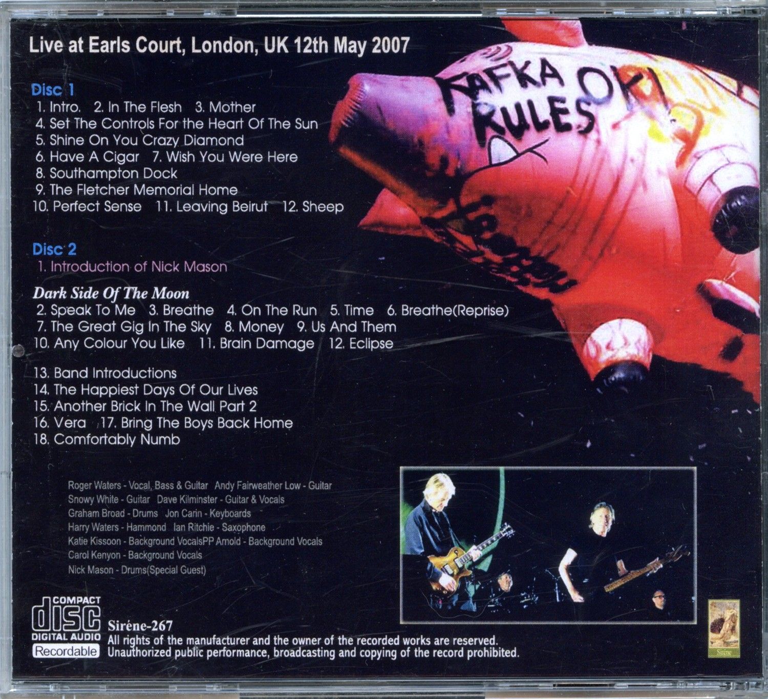 ROGER WATERS – Half Of Pink Revisited The Court ( 2 CD SET ) ( Live at Earl’s Court, London, UK, May 12th, 2007 )