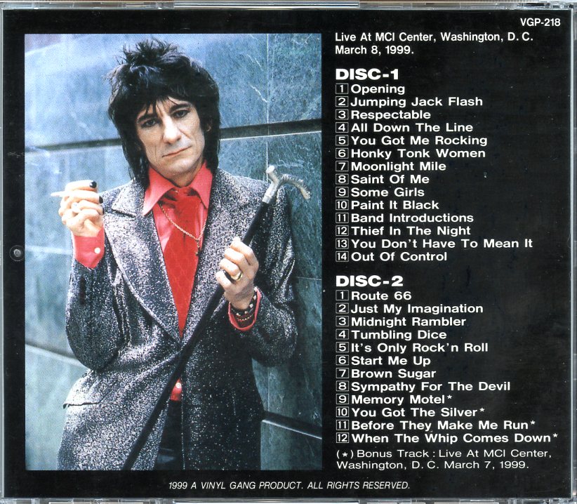 Rolling Stone Welcome To Washington 2 CD Vinyl Gang Live at MCI Center Washington DC March 8th 1999 Rolling Stone Welcome To Washington ( 2 CD )( Vinyl Gang ) ( Live at MCI Center, Washington, DC, March 8th, 1999 )