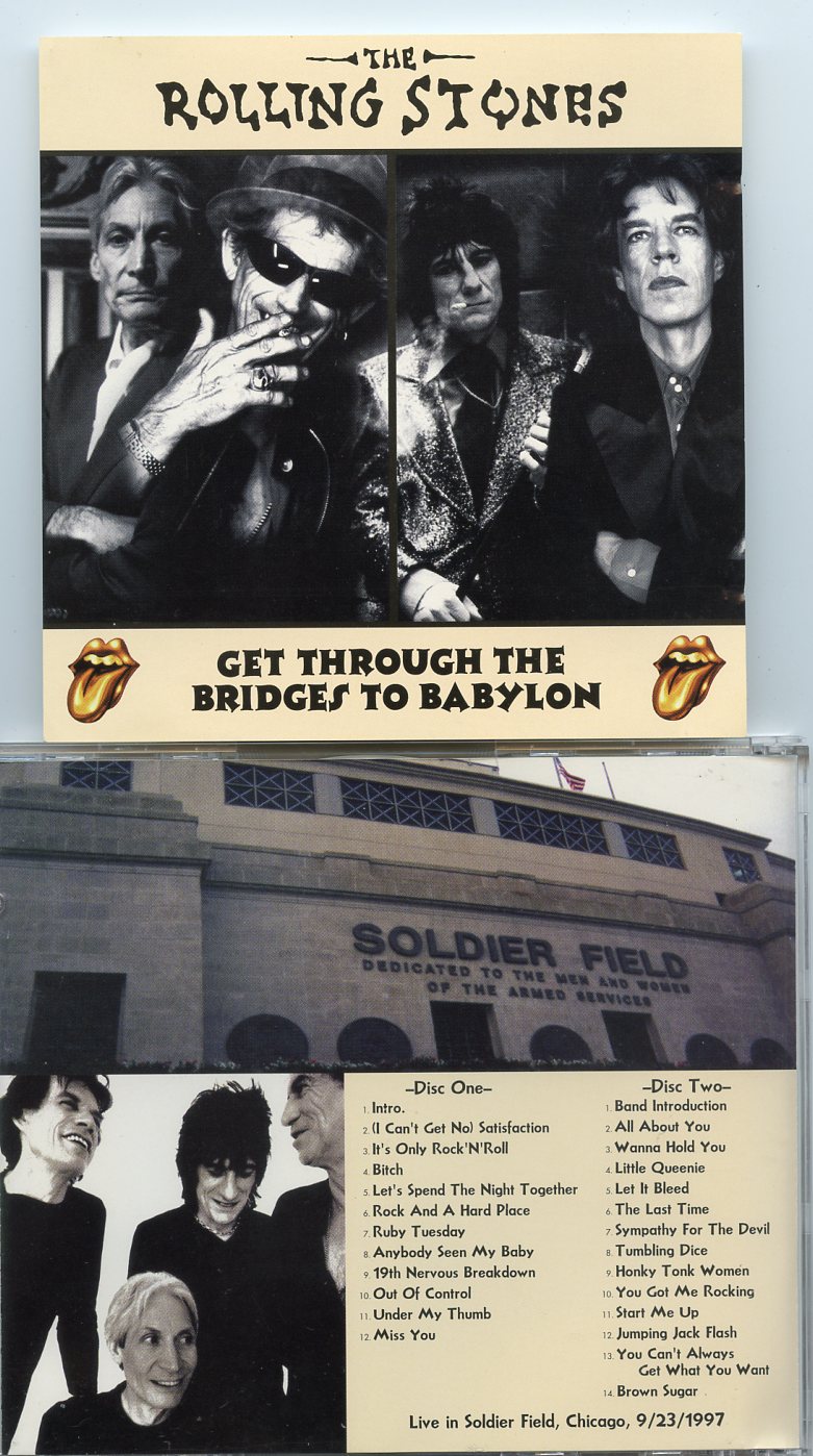 Rolling Stones Get Though The Bridges To Babylon 2 CD Live in Soldier Field Chicago September 23rd 1997 Rolling Stones Get Though The Bridges To Babylon ( 2 CD ) ( Live in Soldier Field , Chicago , September 23rd , 1997 )