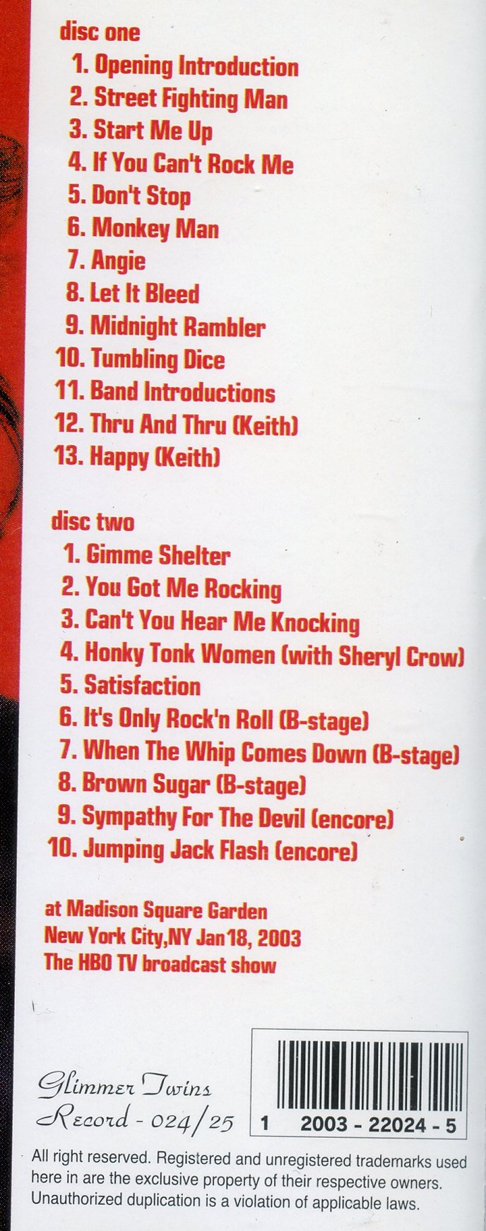 Rolling Stones – New York Is Allright If You Like Saxophones ( 2 cd ) ( Madison Square Garden , NY , USA , Jan 18th , 2003 )