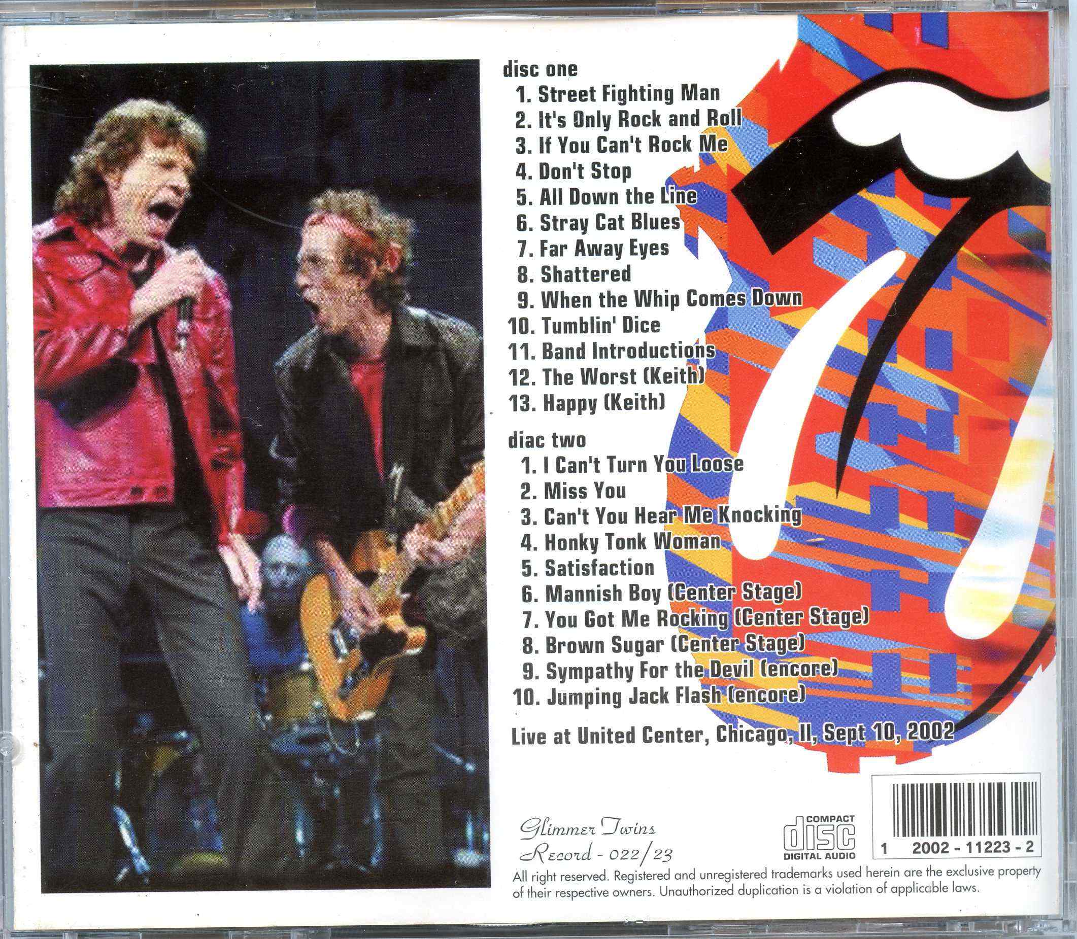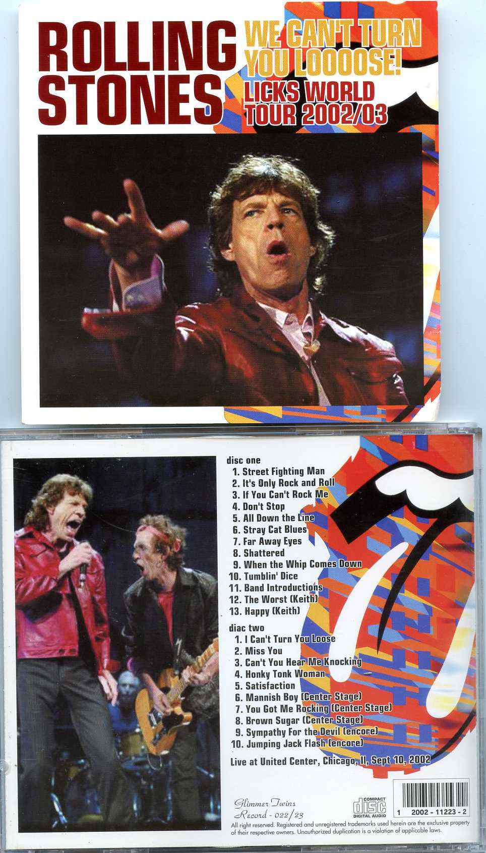 Rolling Stones We Can´t Turn You Loose ! 2CD SET Live at United Center Chicago IL USA Sept 10th 2002 Rolling Stones We Can´t Turn You Loose ! ( 2CD SET ) ( Live at United Center , Chicago , IL , USA , Sept 10th 2002 )