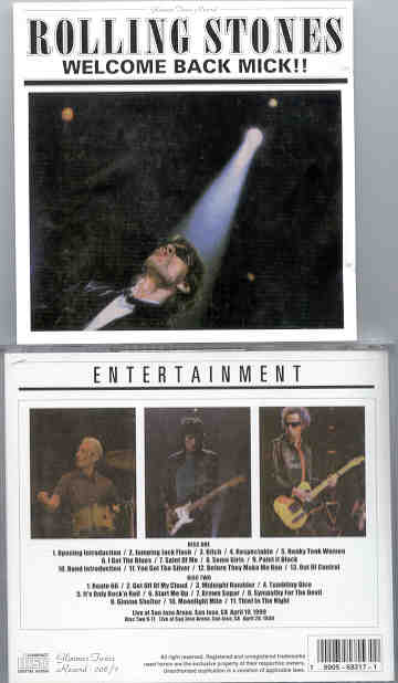 Rolling Stones Welcome Back Mick 2 CD set San Jose Arena CA USA April 19th 1999 Rolling Stones Welcome Back Mick ( 2 CD set ) ( San Jose Arena , CA , USA , April 19th , 1999 )