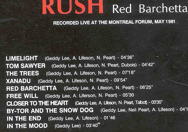 Rush Red Barchetta Montreal 1981 Rush Red Barchetta ( Montreal 1981 )