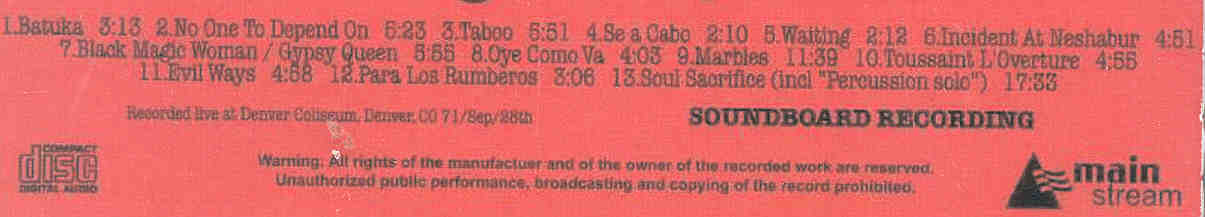 Santana Journey Into The Universe Denver Coliseum Denver CO USA September 28th 1971 Santana Journey Into The Universe ( Denver Coliseum , Denver , CO , USA , September 28th 1971 )