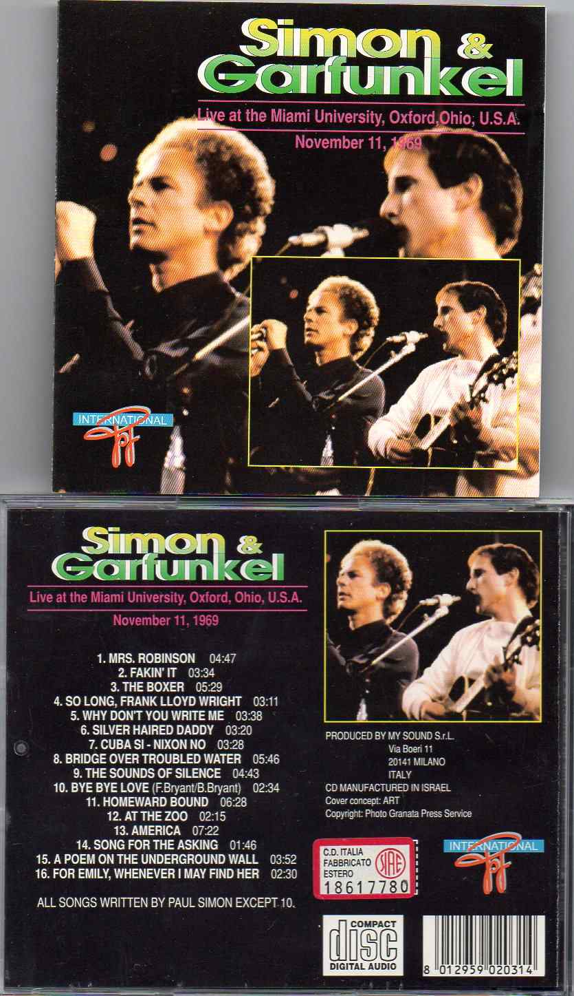 Simon & Garfunkel Live In Ohio 1969 Miami University Oxford Ohio November 11th 1969 Simon & Garfunkel Live In Ohio 1969 ( Miami University , Oxford , Ohio, November 11th , 1969 )