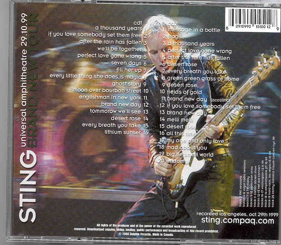 Sting / The Police – Brand New Tour ( Universal Amphitheater , October 29th , 1999 ) ( 2 CD Set )