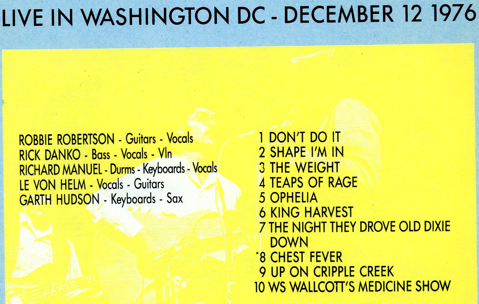 The Band Live In Washington DC December 12th 1976 Seagull Records The Band Live In Washington DC ( December 12th , 1976 )( Seagull Records )