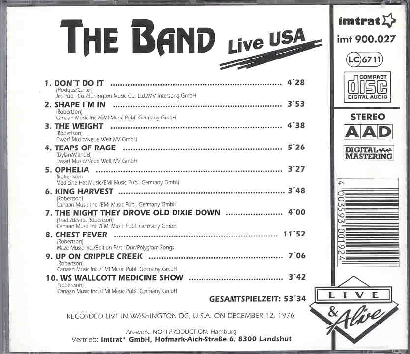 The Band Live USA Washington December 12th 1976 The Band Live USA( Washington , December 12th , 1976 )