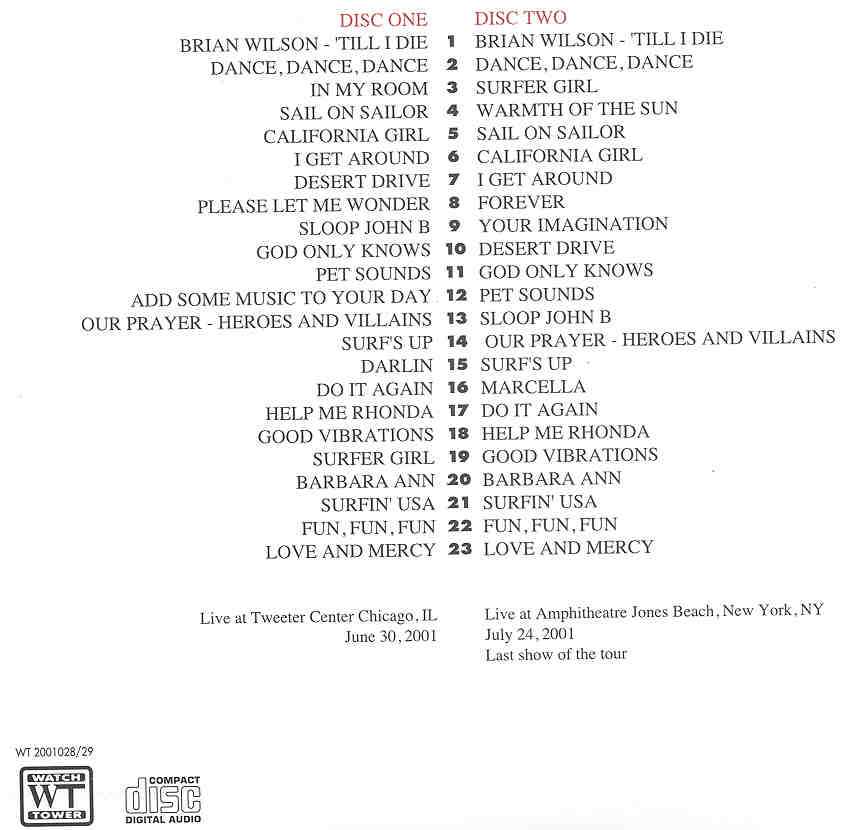 The Beach Boys – A Cork In The Ocean ( 2 cd set ) ( Brian Wilson Live in New York & Chicago , June & July , 2001 )