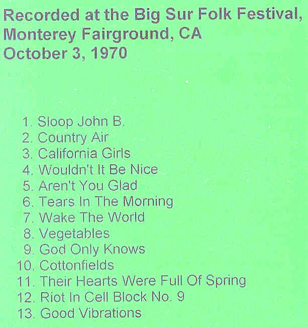 The Beach Boys – Big Sur Folk Festival ( Monterey Fairground , CA , USA , October 3rd , 1970 )