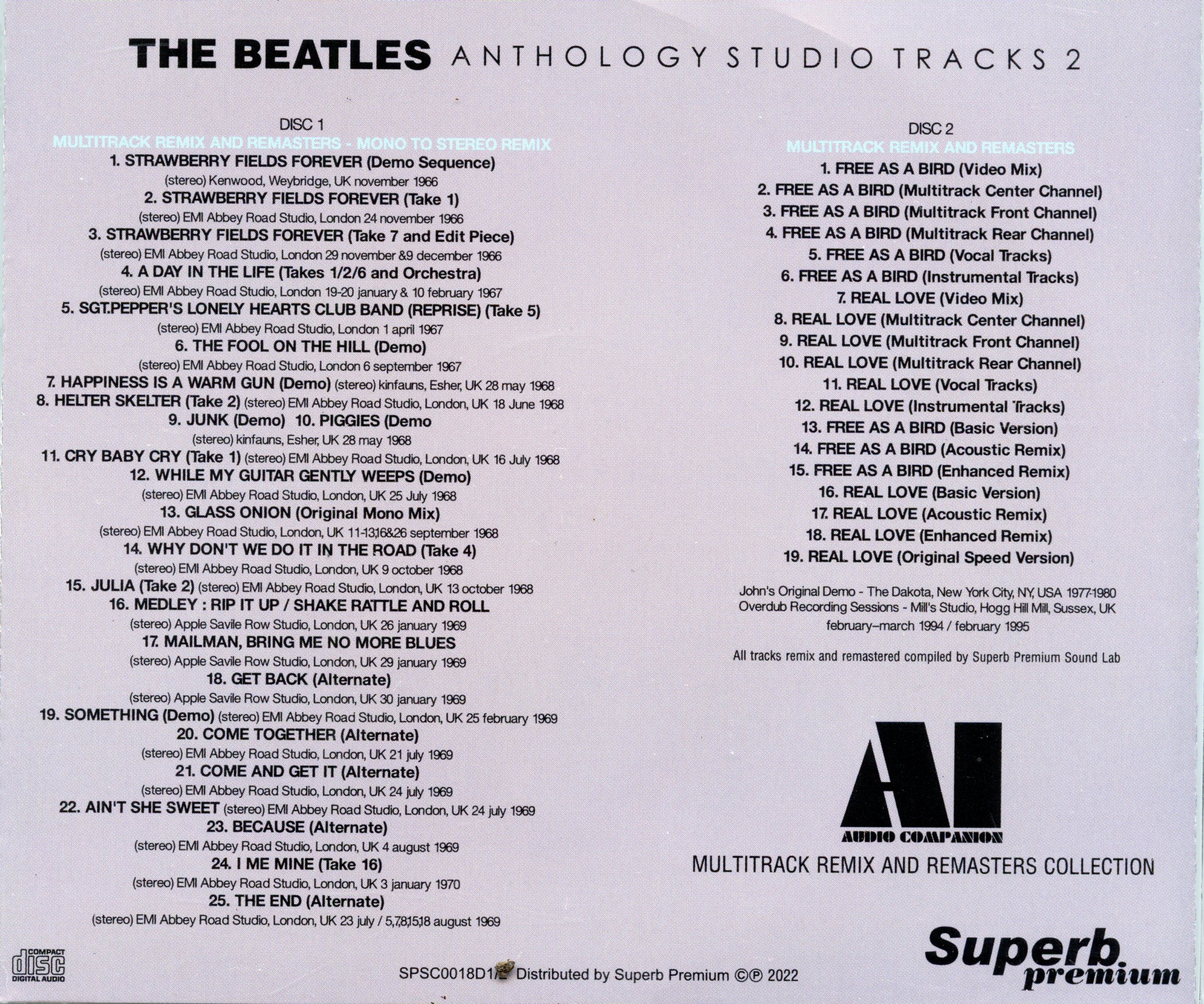 The Beatles Anthology Studio Tracks 2 2 CD SET 2022 Superb Premium The Beatles Anthology Studio Tracks 2 ( 2 CD SET ) ( 2022 Superb Premium )