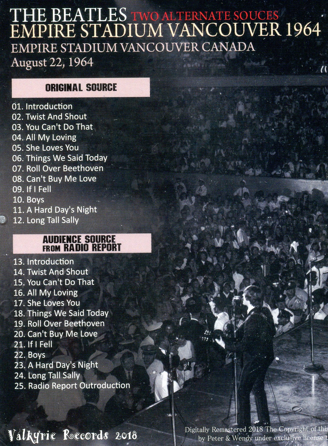 The Beatles – Empire Stadium Vancouver 1964 – Two Alternate Source – Valkyrie Records The Beatles – Empire Stadium Vancouver 1964 – Two Alternate Source – Valkyrie Records