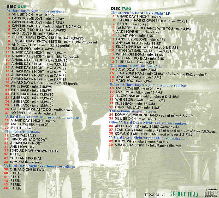 The Beatles Hard Days And Nights 2 CD set SECRET TRAX The Beatles Hard Days And Nights ( 2 CD set )( SECRET TRAX )