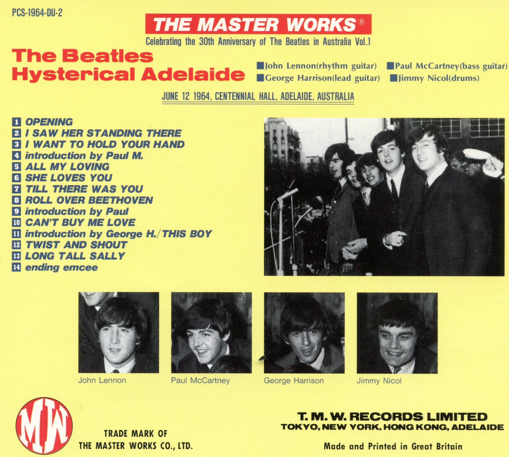 The Beatles Hysterical Adelaide Full Show 1 CD June 12th 1964 Centennial Hall Adelaide Australia TMW Records The Beatles Hysterical Adelaide Full Show ( 1 CD ) ( June 12th, 1964, Centennial Hall, Adelaide, Australia ) ( TMW Records )