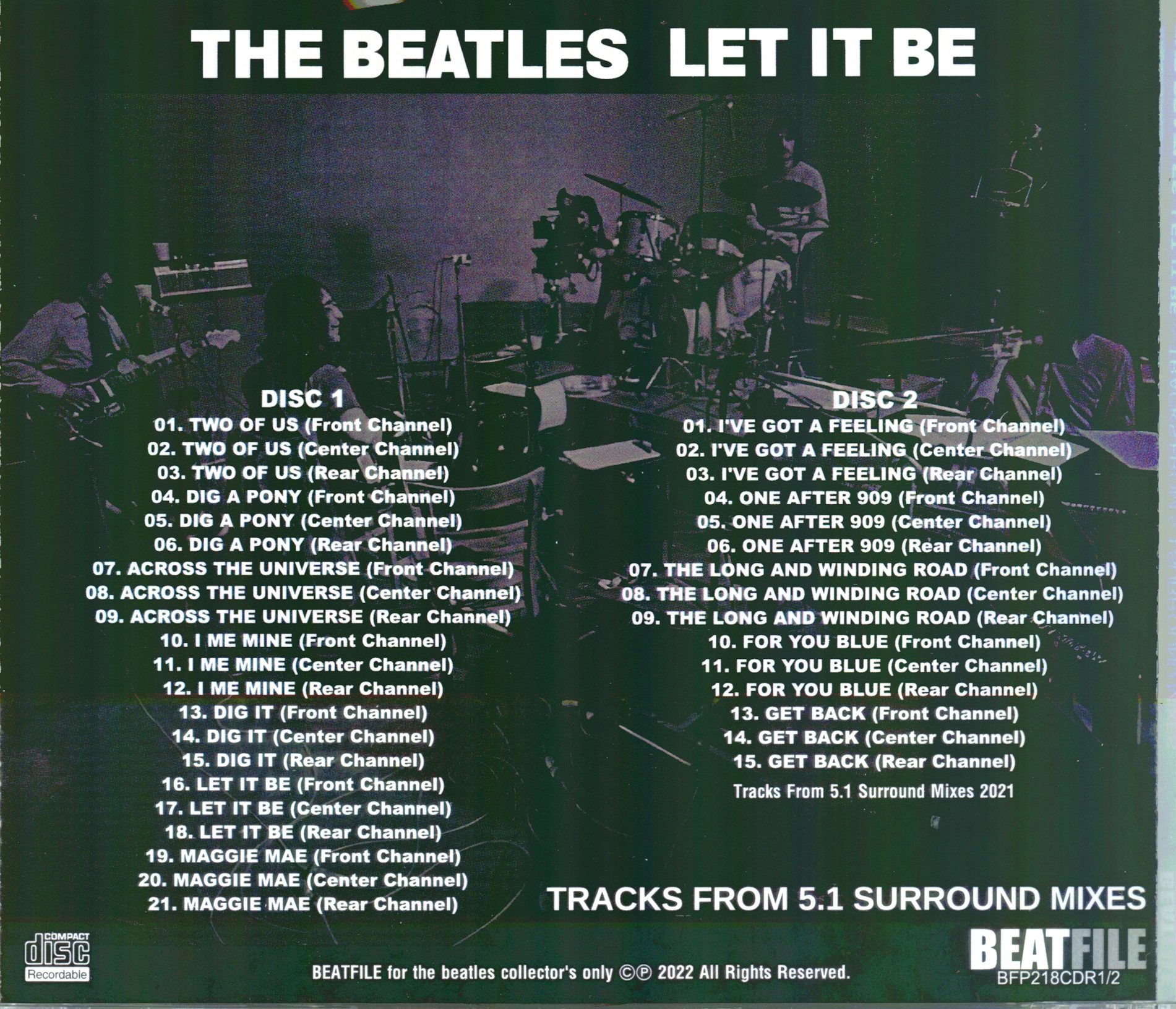The Beatles Let It Be Tracks from 5.1 Surround Mixes 2 CD SET 2022 BEATFILE The Beatles Let It Be Tracks from 5.1 Surround Mixes ( 2 CD SET ) ( 2022 BEATFILE )