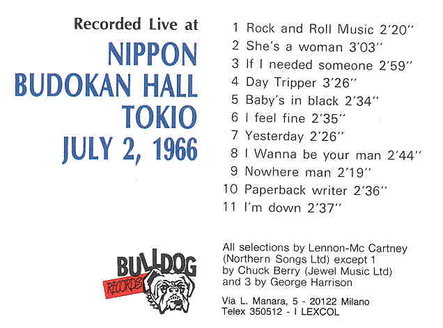 The Beatles Nippon Budokan Hall BULLDOG The Beatles Nippon Budokan Hall( BULLDOG )