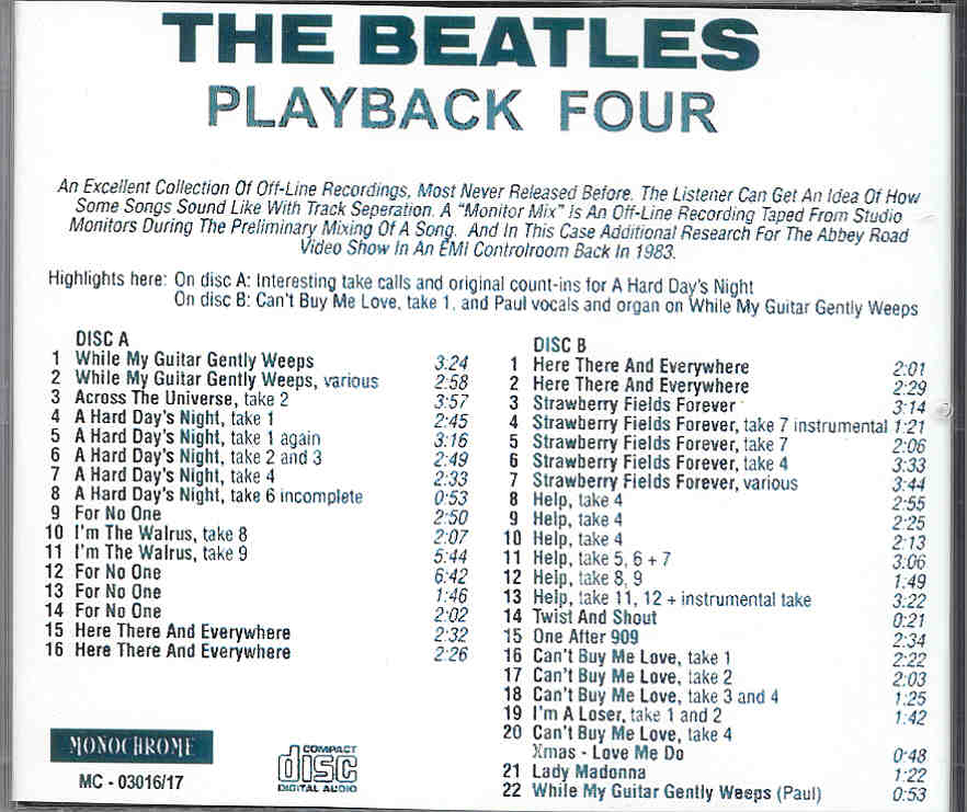 The Beatles Playback Four 1969 1970 2 CD SET Monochrome The Beatles Playback Four 1969 1970 ( 2 CD SET ) Monochrome