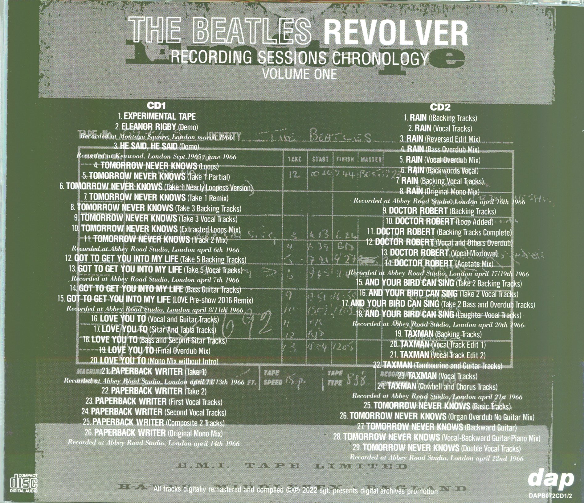 The Beatles Revolver Recording Sessions Chronology Volume 1 2 CD SET 2022 DAP The Beatles Revolver Recording Sessions Chronology Volume 1 ( 2 CD SET ) ( 2022 DAP )