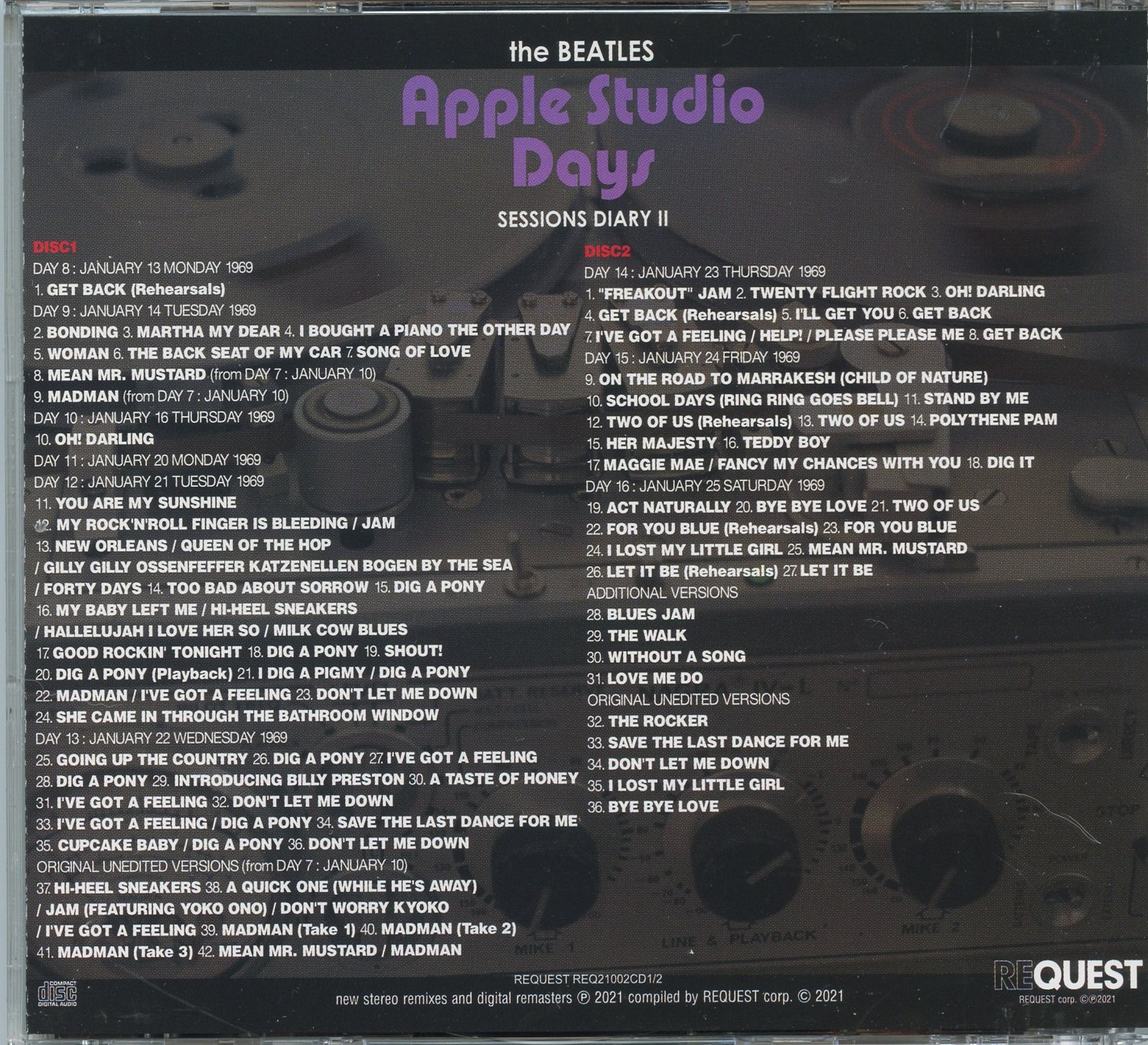 THE BEATLES – Twickenham Studio Days Session Diary 2 ( 2 CD SET ) ( REQUEST ) ( Day 8 Monday January 13th to Day 16 Saturday January 25th, 1969 )