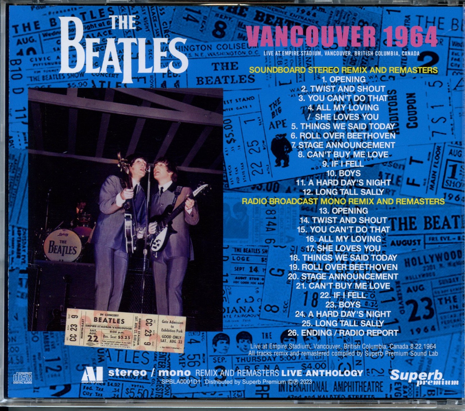The Beatles Vancouver 1964 Live at empiere Stadium Vancouver British Columbia Canada 08/22/19664 1 CD Superb The Beatles Vancouver 1964 Live at empiere Stadium Vancouver British Columbia Canada 08/22/19664 (1 CD) (Superb)