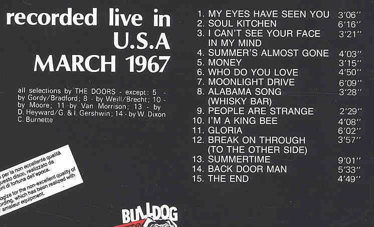 The Doors Live In USA 1967 Bulldog Recs The Doors Live In USA 1967( Bulldog Recs )