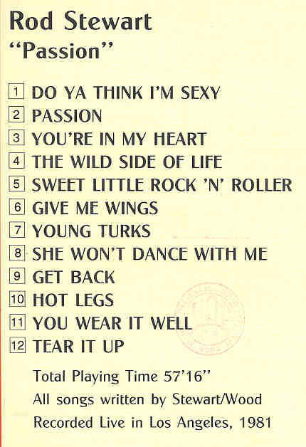 The Face / Rod Stewart – Passion ( On Stage Recs ) ( Rod Stewart Live At Los Angeles , CA , USA , 1981 )