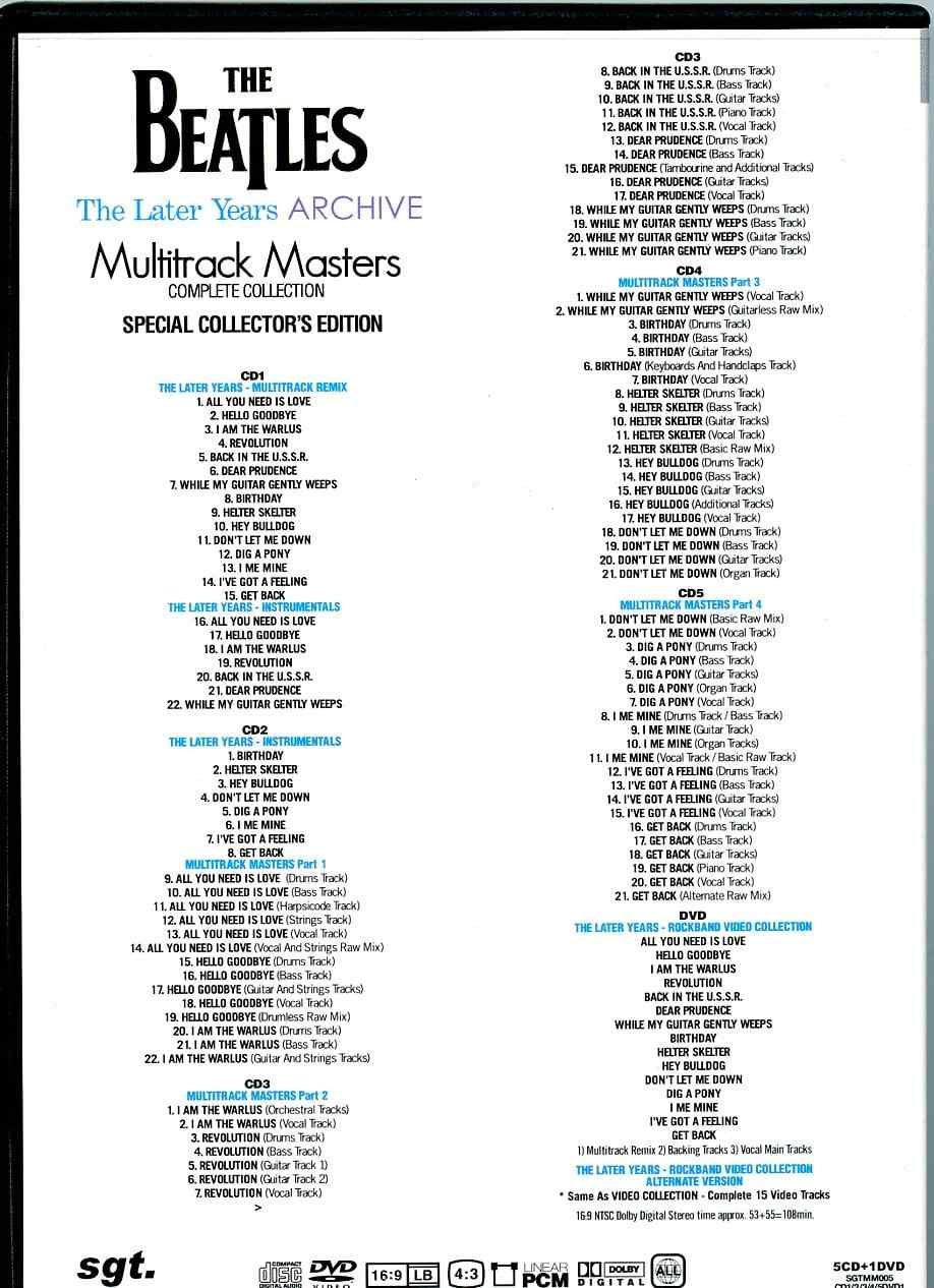 The Beatles The Later Years Archive Multitrack Masters Complete Collection 5 CDS + 1 DVD The Beatles The Later Years Archive Multitrack Masters Complete Collection( 5 CDS + 1 DVD )