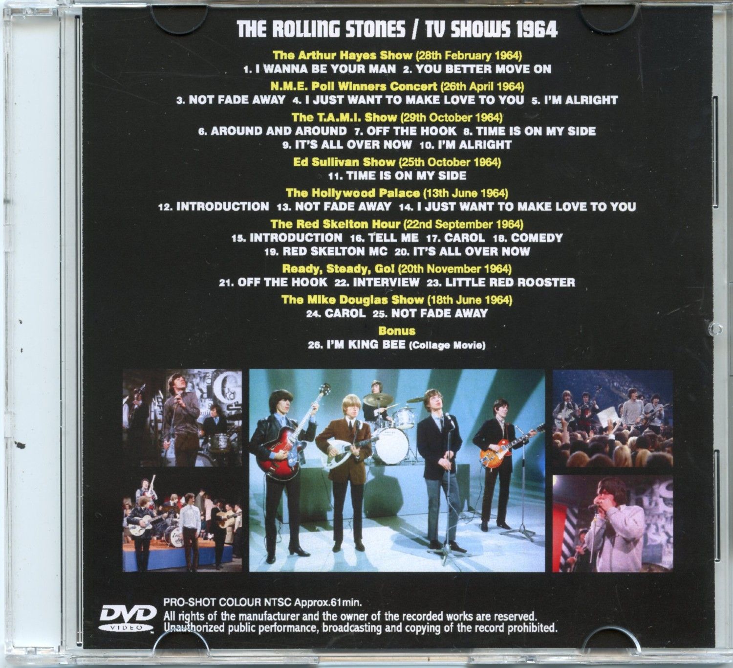 The Rolling Stones – TV Shows 1964 Colorized ( 1 DVD ) ( Arthur Hayes Show, NME poll Winners, TAMI Show, Hollywood Palace, Ed Sullivan, Red Skelton Hour, Mike Douglas Show and More )