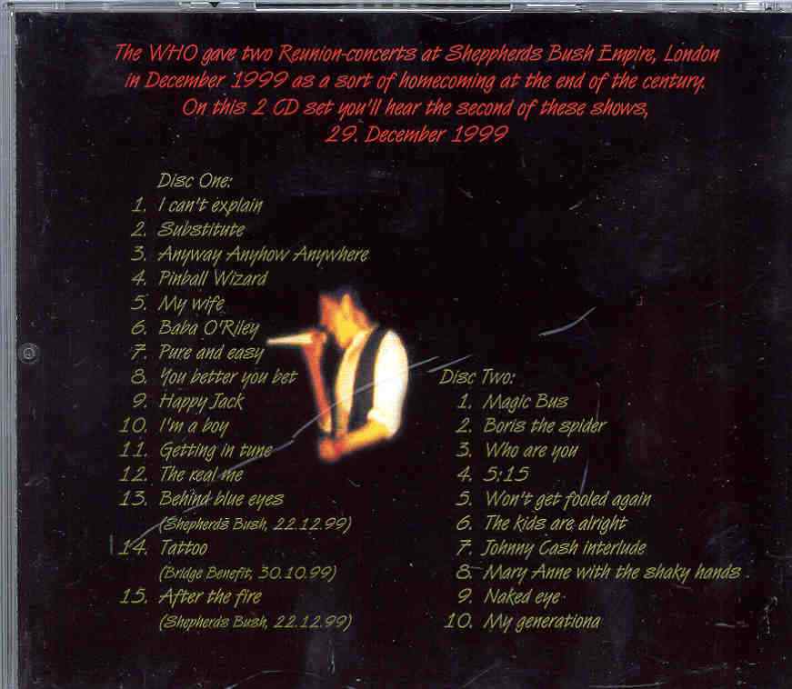 The Who Live 2000 2 CD SET December 29th 1999 Sheppherds Bush Empire London UK The Who Live 2000( 2 CD SET ) ( December 29th , 1999 , Sheppherds Bush Empire , London , UK )