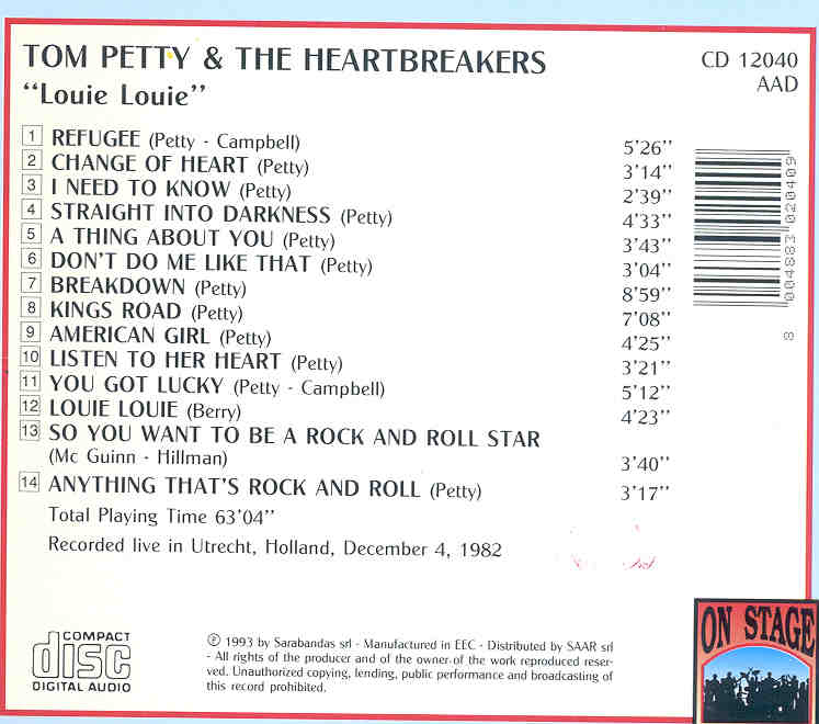Tom Petty – Louie Louie ( On Stage Recs ) ( Live In Utrecht , Holland , December 4th , 1982 )