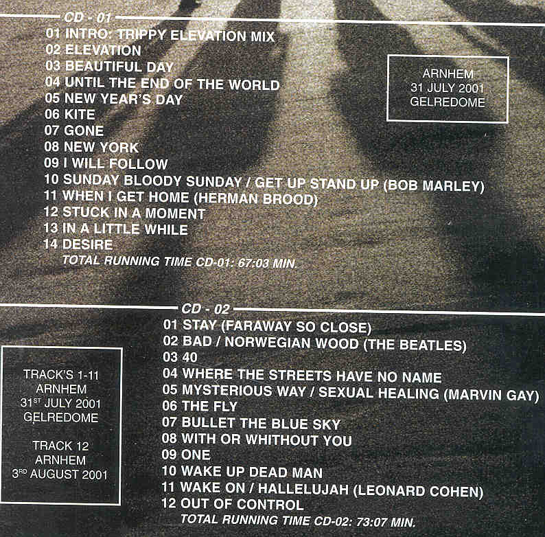 U2 – Elevate Your Rights ( 2 CD SET ) ( Arnhein , July 31st , 2001 )